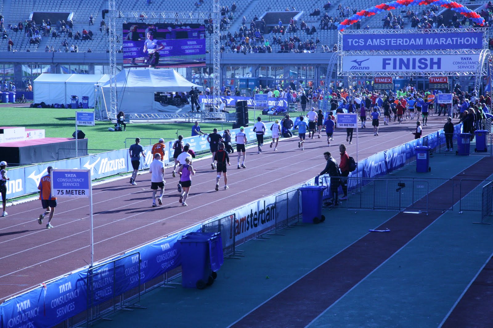 I liked the occasional band or DJ playing music along the way. I would be lying if I said the theme to chariots of fire wasn’t running through my head as I approached the finish line in Olympic Stadium